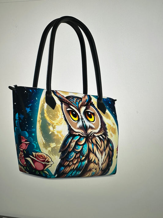 Owl tote purse bag Napa leather